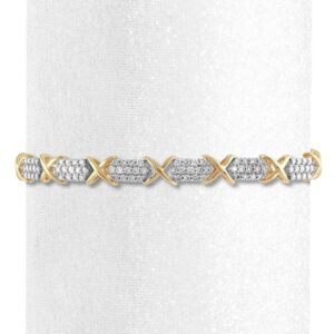 Round and baguette diamonds shine on a 10K yellow gold heart in this fabulous necklace for her. A white rhodium flash completes the look. With a total diamond weight of 1/2 carat, the pendant sways from an 18-inch cable chain that secures with a spring ring clasp.