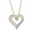 Diamond Heart Necklace 1/2 ct tw Round & Baguette 10K Yellow Gold 18″