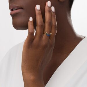 1/10 CT. T.W. Champagne and White Diamond Cheetah Ring in 10K Gold and Black Rhodium:1/10 CT. T.W. Champagne and White Diamond Cheetah Ring in 10K Gold and Black Rhodium